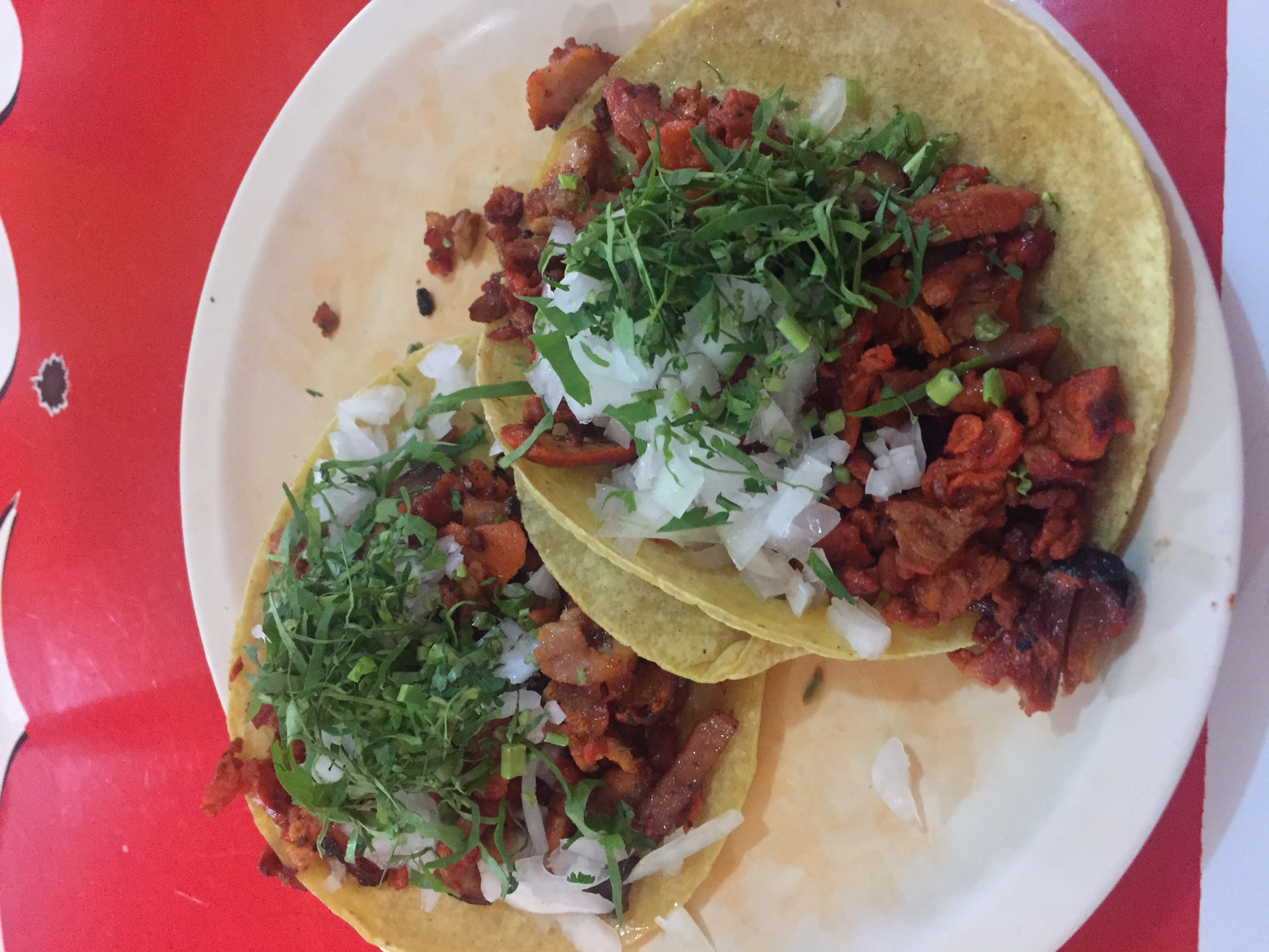 It was… And while they weren’t fully up and running (they had to cook a portion of al pastor meat on the grill for me), there were Mexicans eating there at that hour. I asked for two al pastor tacos and while I really wanted Nestea, asked for more “Mexican” jamaica (hibiscus) tea, which I’m not fond of. They were out of jamaica so I got my Nestea. 🙂