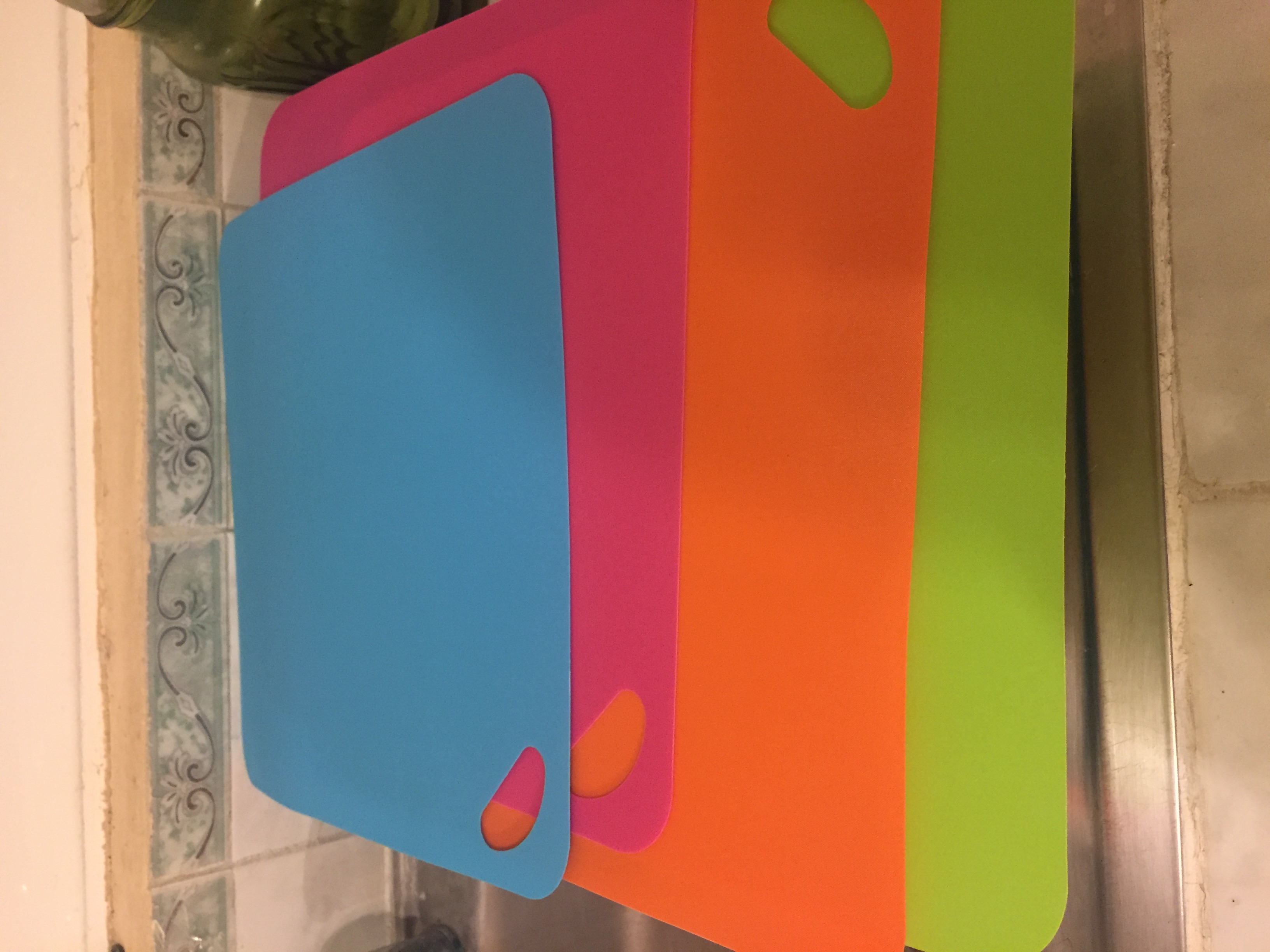Another thing I was looking for was another cutting board so I can have one for meat and one for veg. I got all of these for only about $70 and the label even showed examples of how the colours can be associated to a specific food. They are also non-skid and will work great on my tile counters.