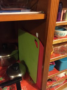 I store under there some things that were left in the kitchen that I wouldn’t use, plus some cleaning products that I don’t use regularly.