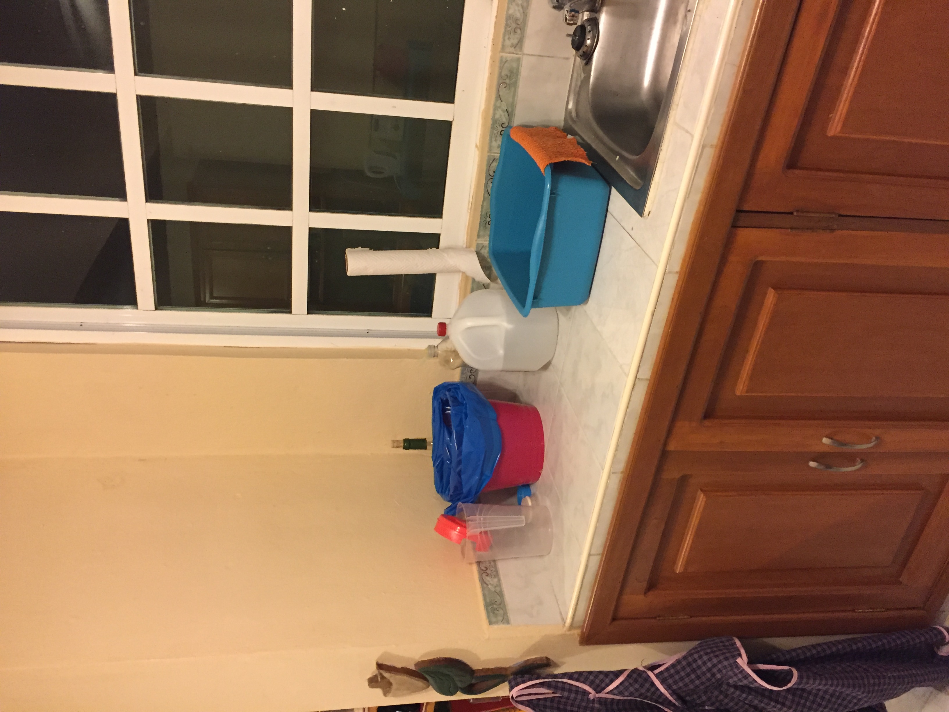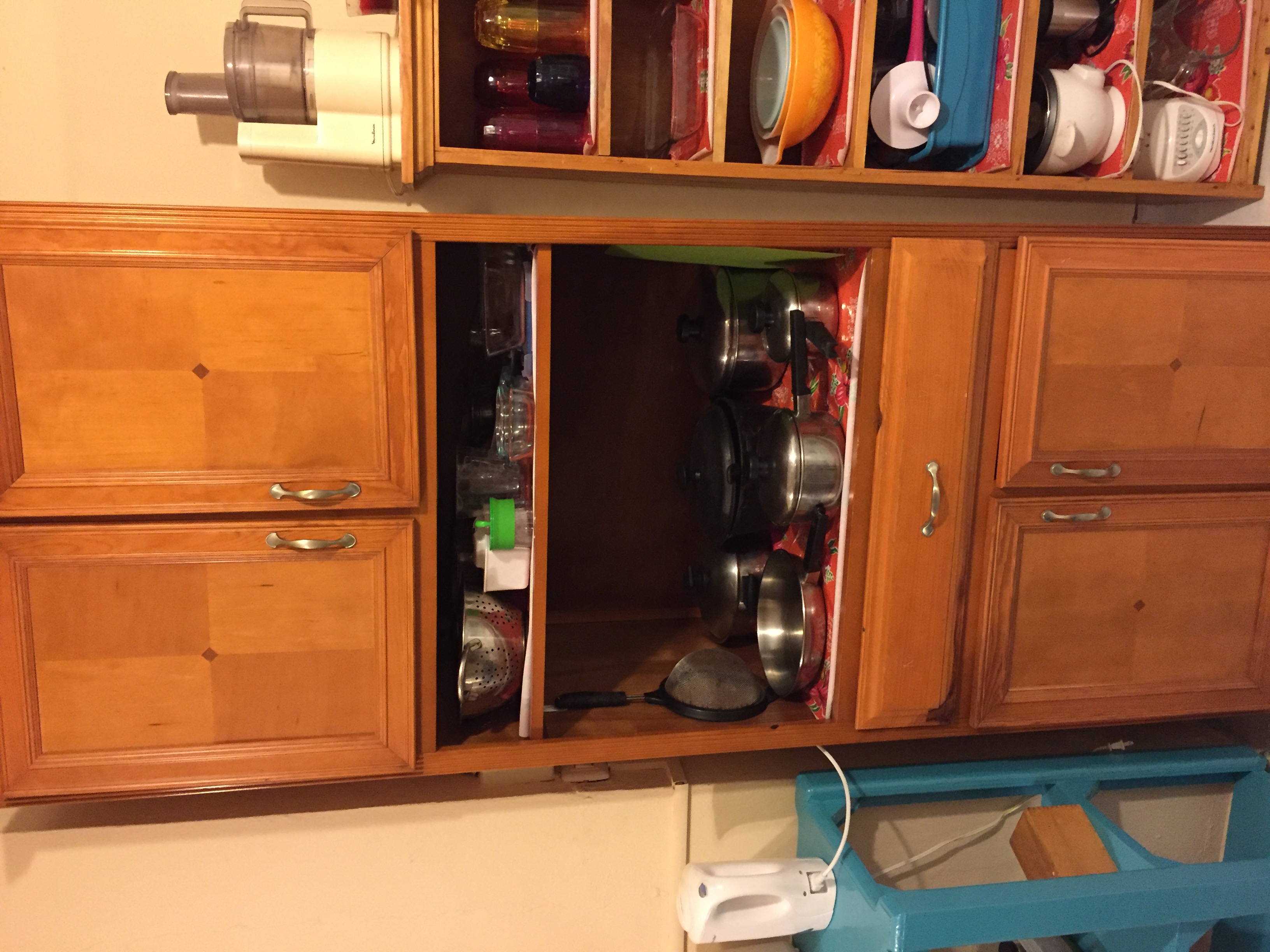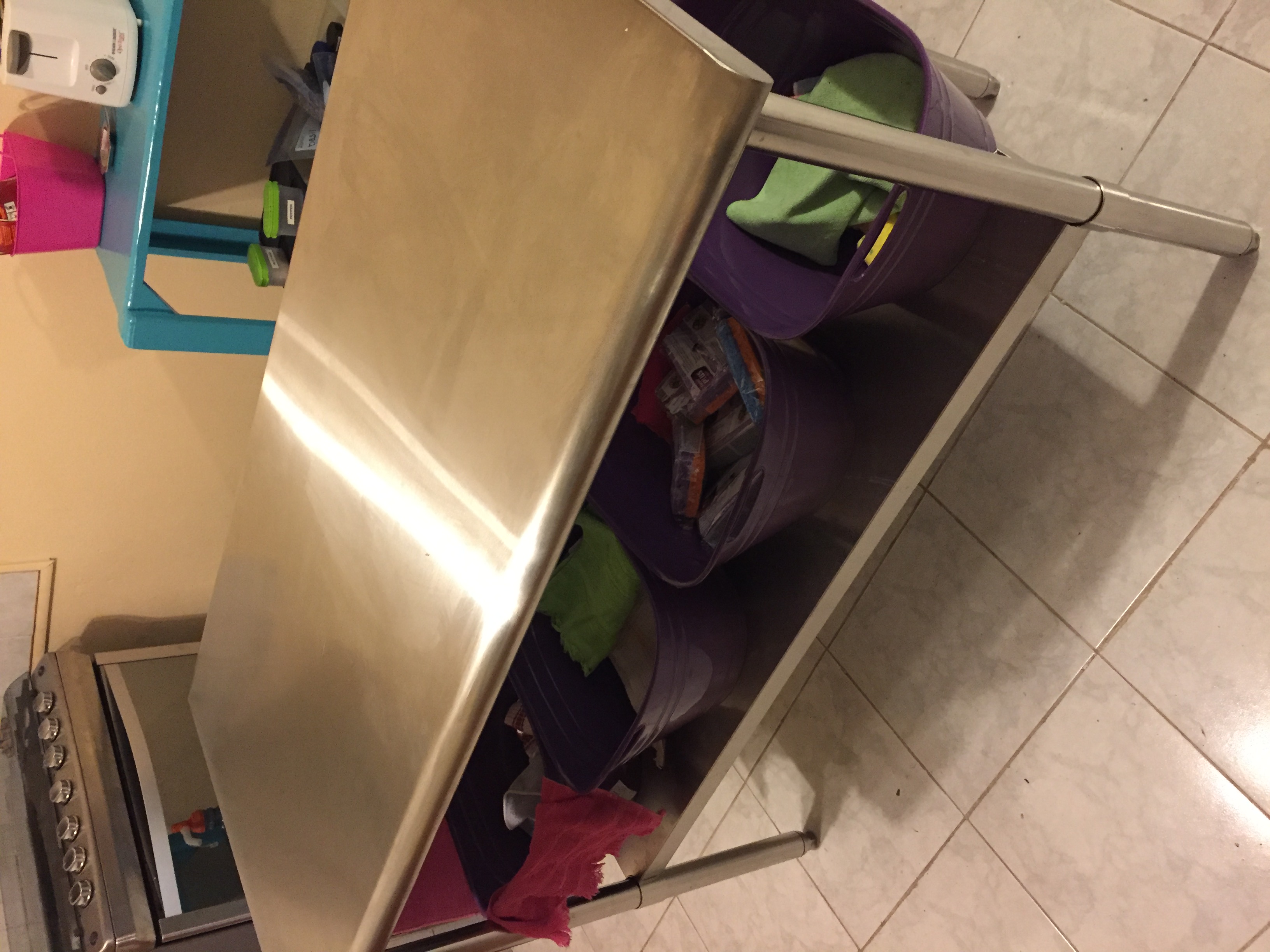 I store under there some things that were left in the kitchen that I wouldn’t use, plus some cleaning products that I don’t use regularly.