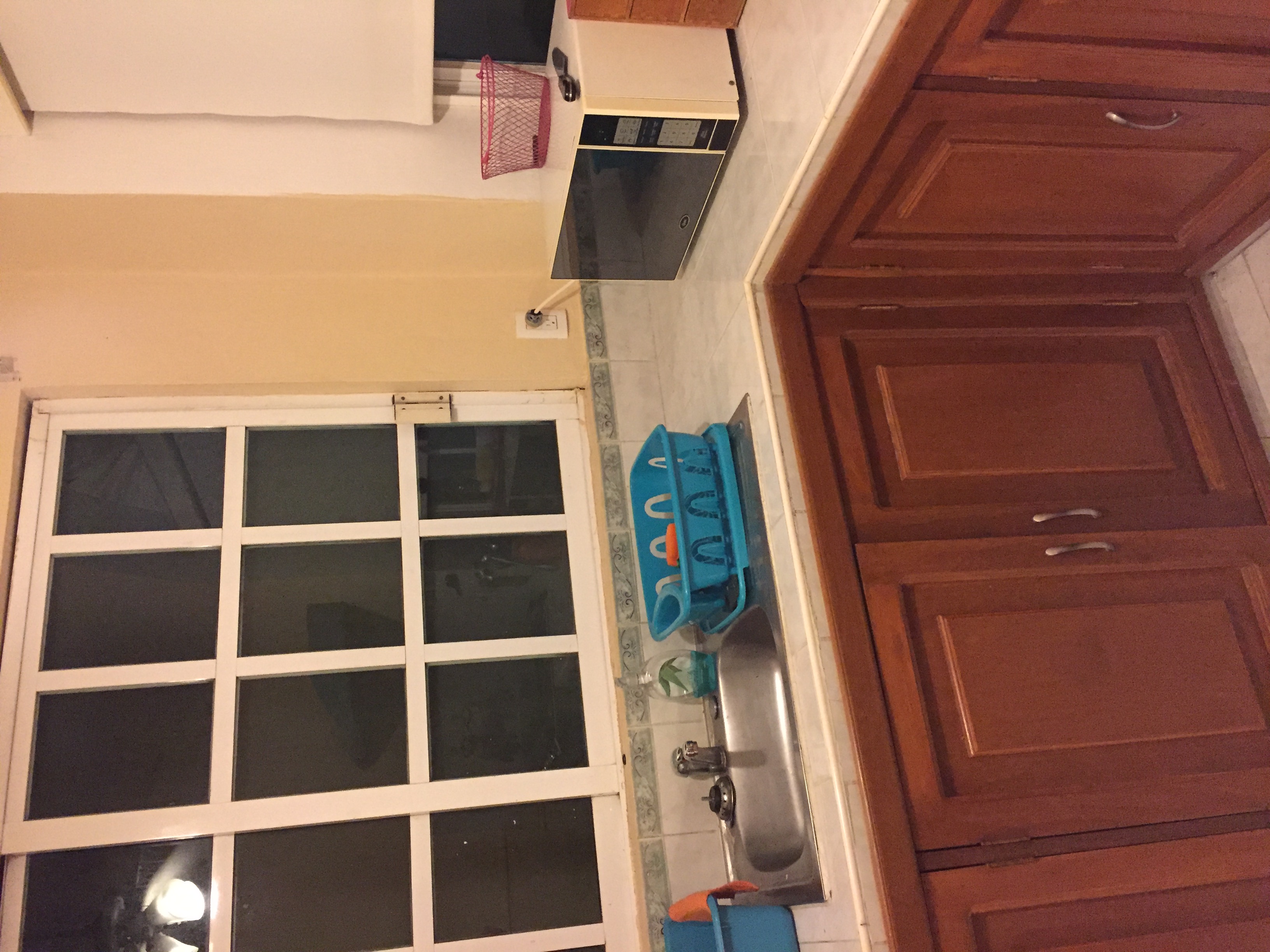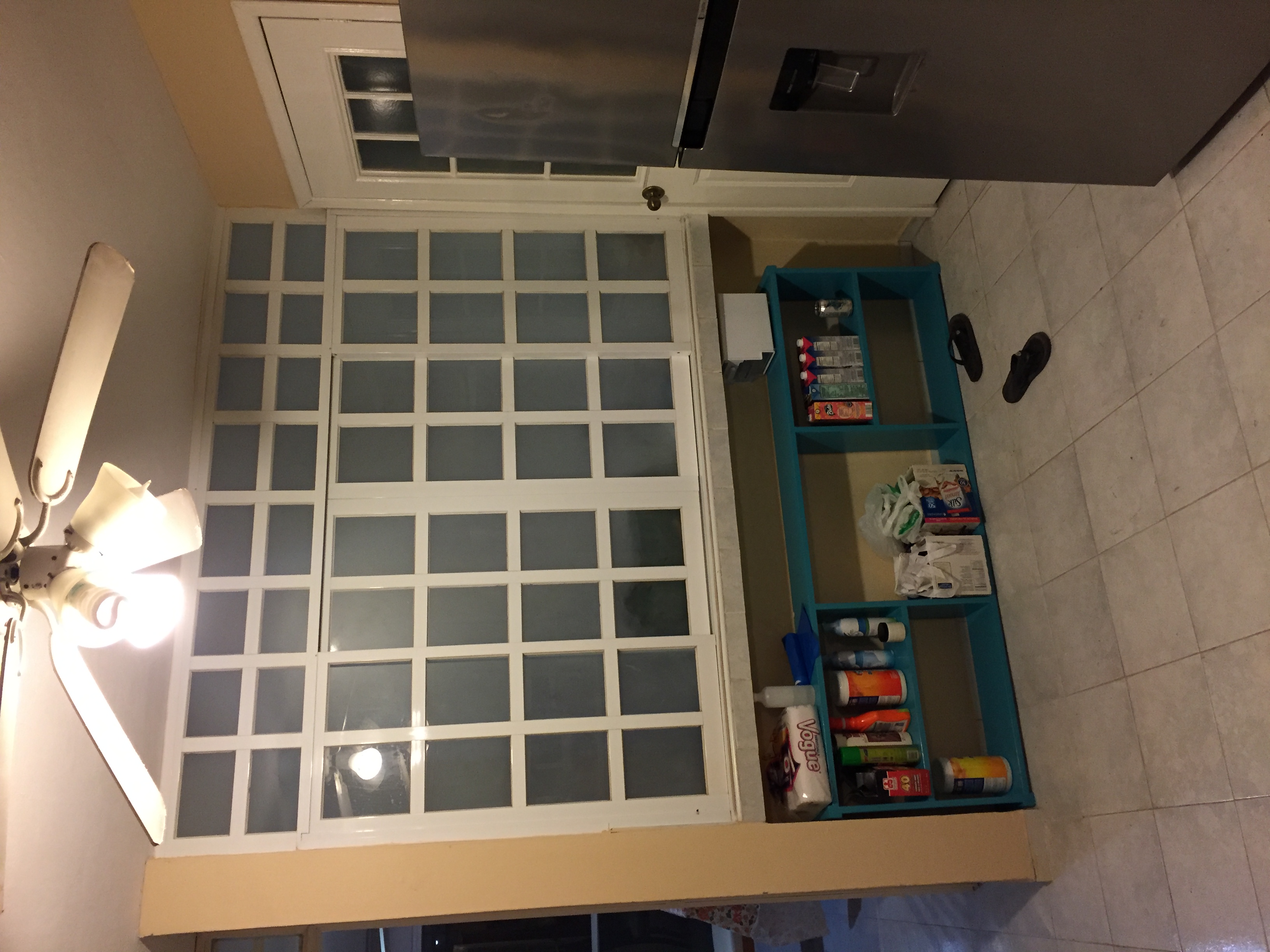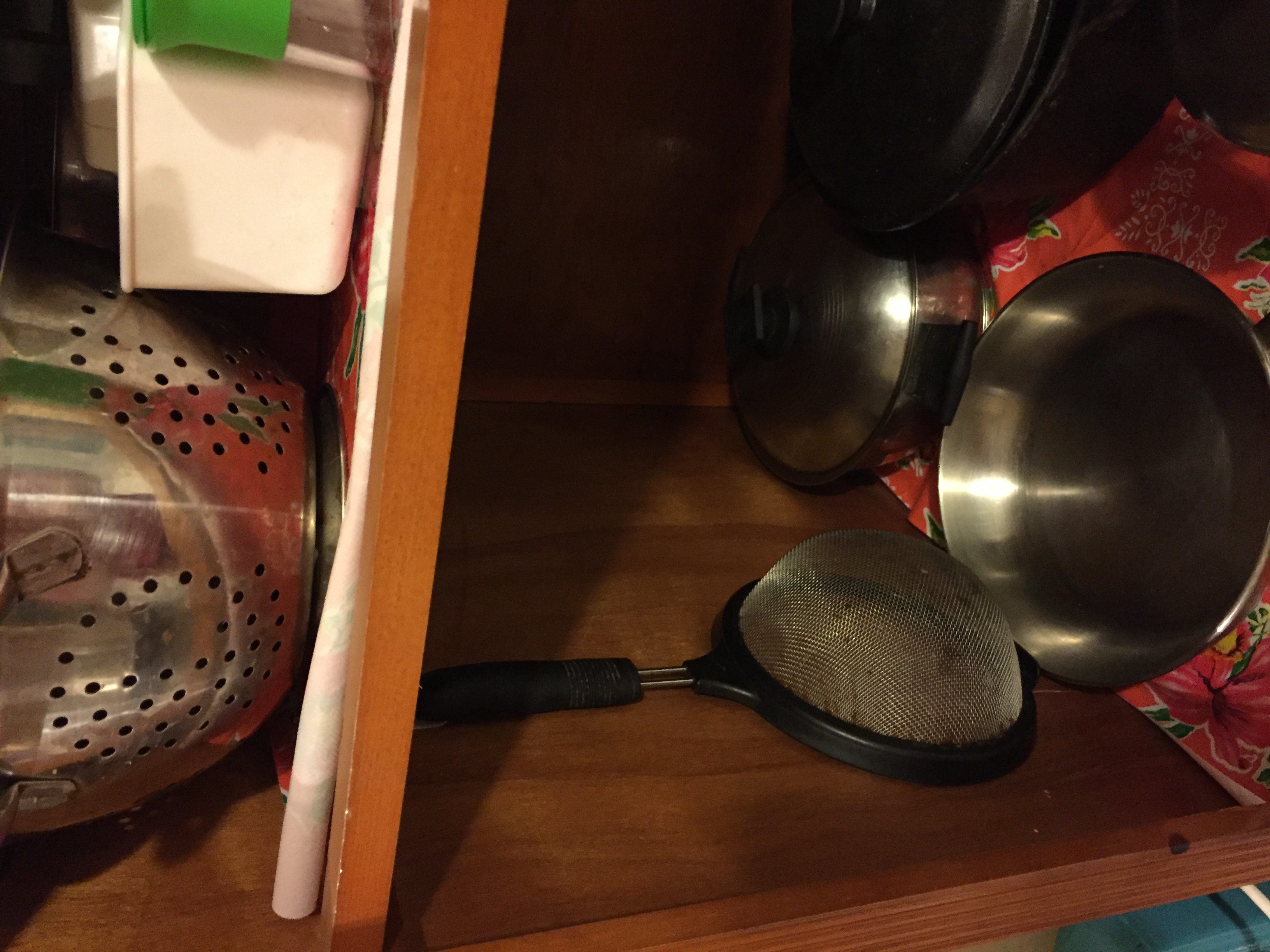 I store under there some things that were left in the kitchen that I wouldn’t use, plus some cleaning products that I don’t use regularly.
