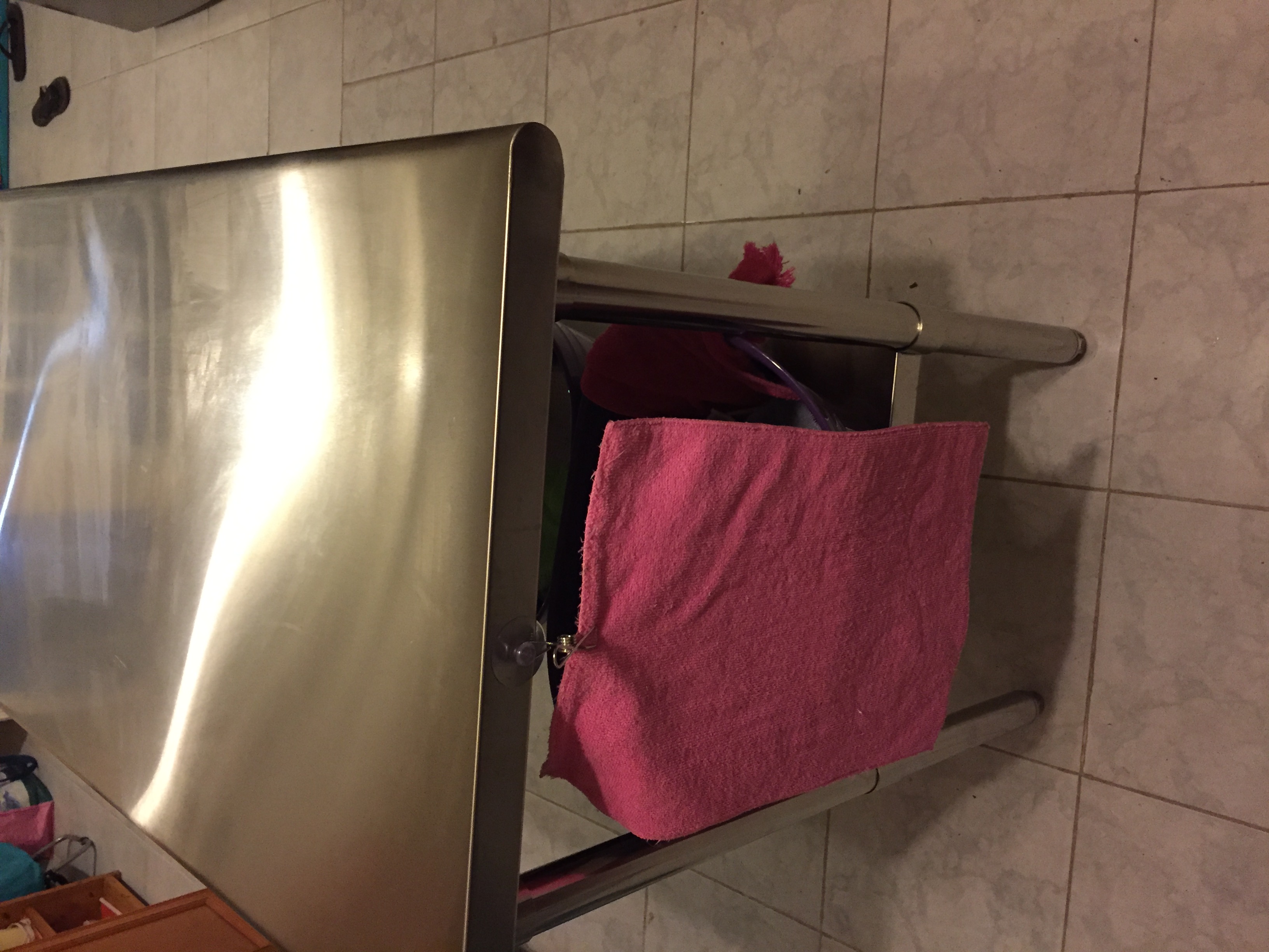 I stuck another suction cup clip on the end of the table to hold the drying mat I use when I have too many dishes for the drying rack: