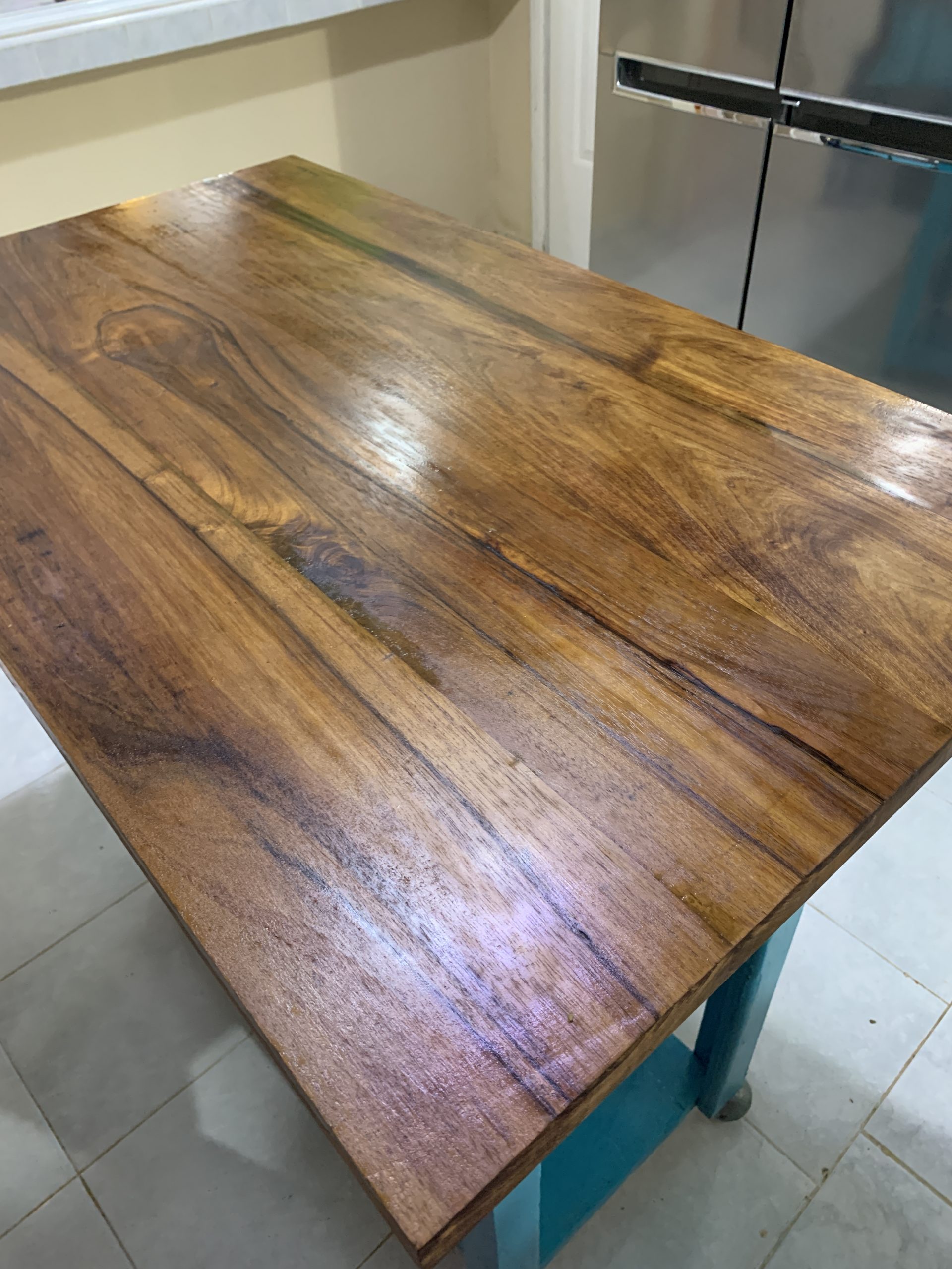 Baking is always ‘hard’ on my wooden counter, so I scrubbed it well and gave it a coating of mineral oil to return its shine. I’ve had this counter a year now and love prepping food on it.
