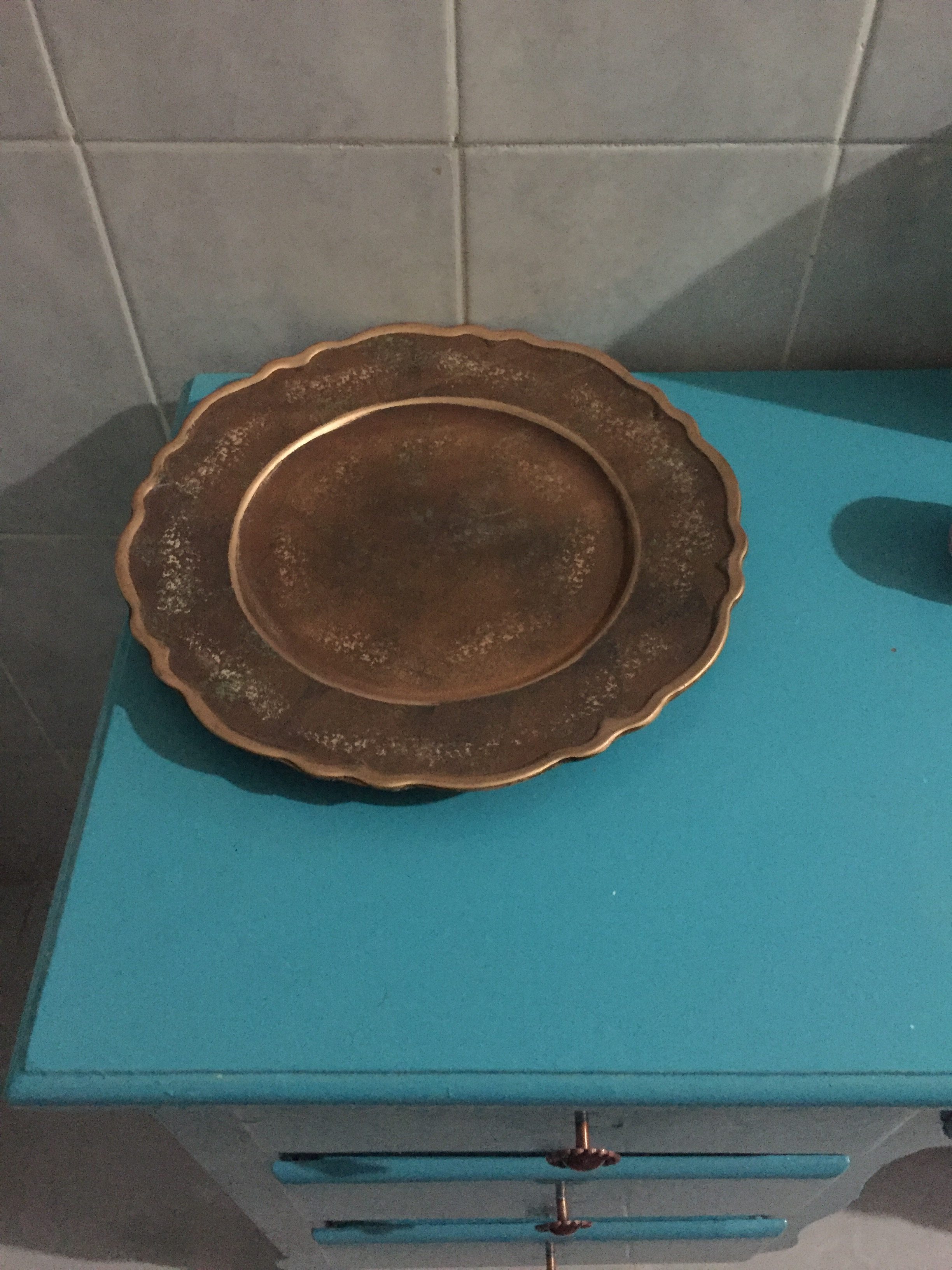 I’ve been looking for a tray or something with which to cover the hole in my master bathroom dresser. Triunfo had aisles of super inexpensive pretty serving platters and I eventually settled on this one that matches the pulls. Only $95 as well as it’s plastic, but it looks so pretty!