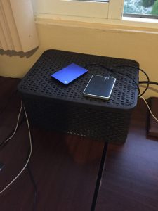 When I need an iOS device cable, I can just pop the lid and expose my former nightmare! And when I just want to charge, I’ve fed the cables out the box so I can just plug in and leave my devices on the box, out of the way.