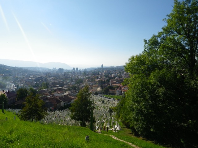 There was a sort of fortification at the top of the cemetery, with a lot of people heading up there, so I decided to check it out and found an astounding nearly 360 view of Sarajevo.