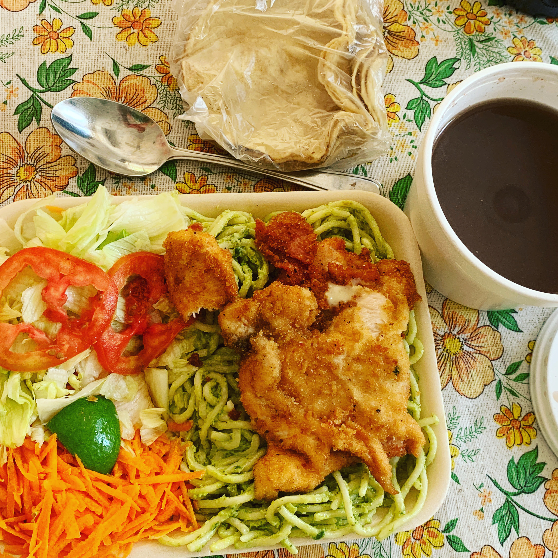 I think my love of tacos is becoming the stuff of legends, but that’s not the only local food I enjoy! The dish I’m going to share today might not seem “Mexican,” but it’s on the menu of just about every local cocina economica, a small family restaurant that does brisk business at midday (between most start after 10:00 and close by 3:00). I love cocina economicas, and I have three good ones right around here who send me their menu daily. Sadly, at this time, only one of them is still operating. I try to order from them an average of once a week. Some weeks I don’t order at all, other weeks, I order every other day. It depends on the menu, how busy I am, and if I’m in the mood to cook or not. I really like how the menu comes out sometime been 8:00 and 9:00 A.M., at which point I can order for delivery whenever I think I’ll want lunch. A “half” portion for one person from these folks is just 40 pesos (about 1.90USD or 2.50CAD), and I add a 10-peso tip. Delivery is always within five minutes of the requested time!