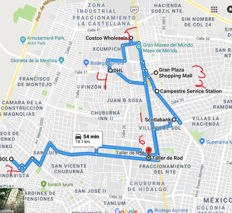 Now, I was just missing the curtains and I planned to pick them up Saturday — today! At the same time, I was going to do a Bodega Aurrea and Chedraui run for another project, which I’ll get into below. I got up earlier than I would have liked and knocked out a job in record time, then set off around 11:30. Here’s my map of my errands today:
