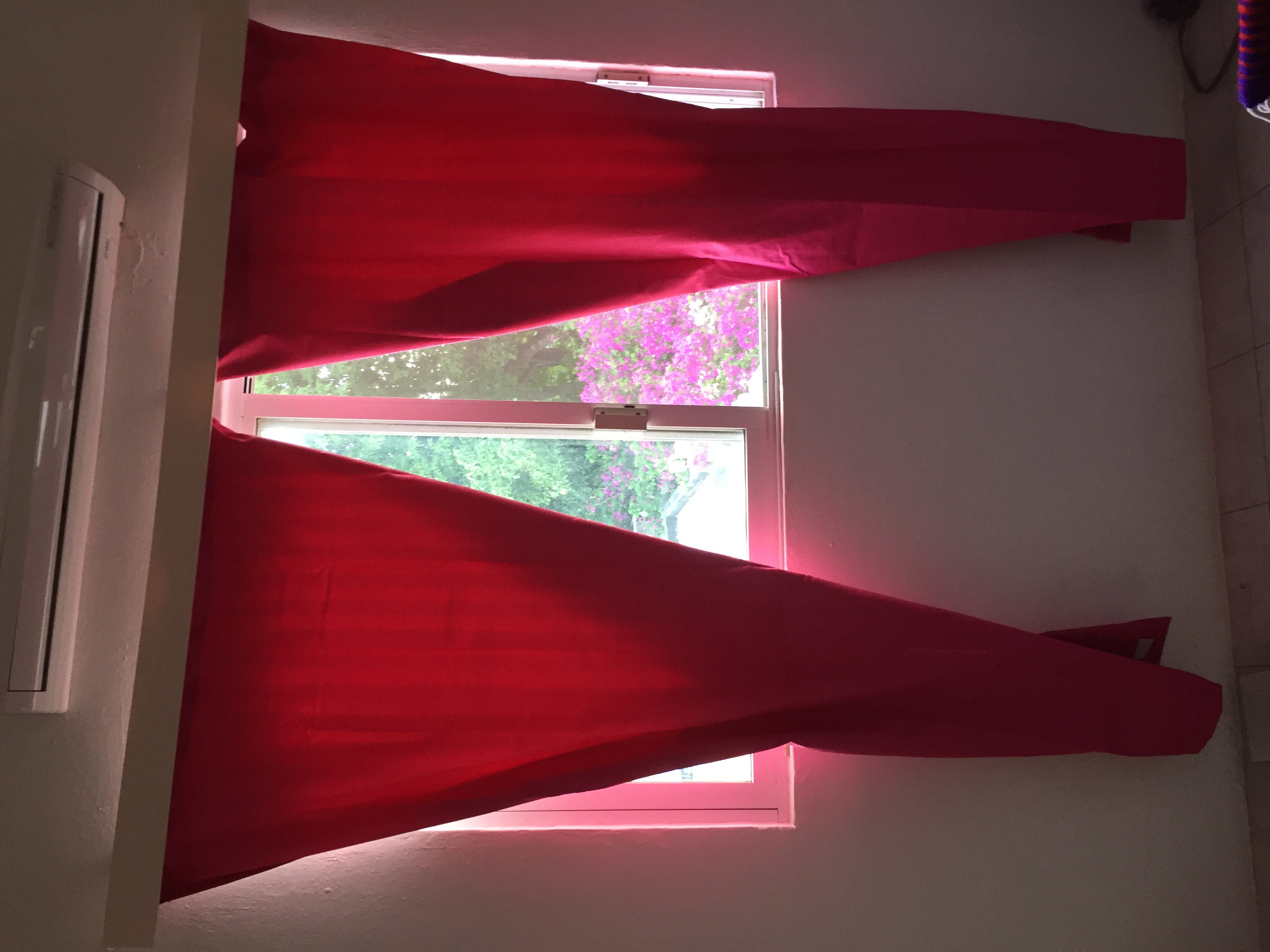When I got in a mere two hours later, I carefully removed the slats from the blinds in my bedroom. I would have liked the double layer of darkness protection, but they flap so badly I can’t have the windows open in there! I then hung the curtains from the blinds’ rail using the hooks. Not perfect as the curtains don’t move well, but this will do just fine as I can at least have the windows open during the day to air out the room.