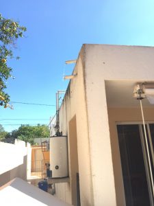 This caused the water pump to start to empty the ground level tinaco to refill the rooftop tinaco. I wasn’t sure at first that the pipe was coming from the tinaco, so I went upstairs and climbed onto the first floor’s roof (I don’t have easy access to the second roof, where the tinaco is). There, I was able to confirm that, yes, the piping was coming from the tinaco. While I was there, I checked the propane tank level and discovered it was just about empty so I made a mental note to order some once I’d dealt with the plumbing.