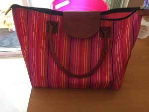 I had a bit of a poke around and popped into a shop right by my truck to look at purses. I love my leather tote, but it’s super heavy and the top doesn’t close. So I’ve been casually looking for another bag, but not willing to invest in one. This one caught my eye immediately, in a sturdy plasticky material (probably the same kind of thing used to cover outdoor furniture), but very lightweight. It had a zipper on top and a large pocket within. The sales lady said that the handles, pull tab, and top flap (which, frankly, I could do without) are real leather (a sniff test confirmed it). It’s handmade and has a “lifetime” guarantee. I had a look at the price tag and, as expected, the price was up there, $2,500. No… wait. there’s another zero and the decimal is actually here. “$250?” I asked the clerk. “Yes, since it only has very little leather.” SOLD. That’s 19CAD, or about 14USD!