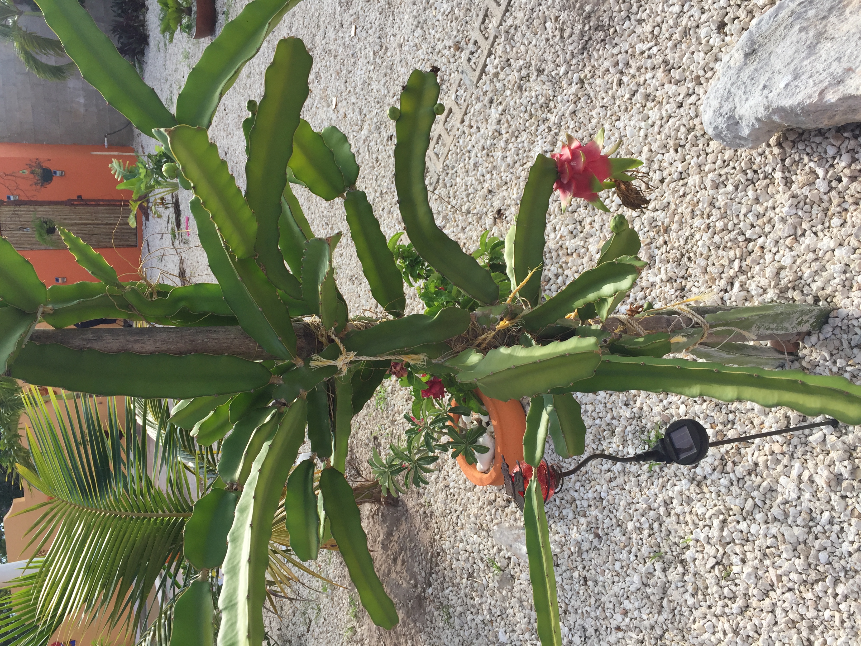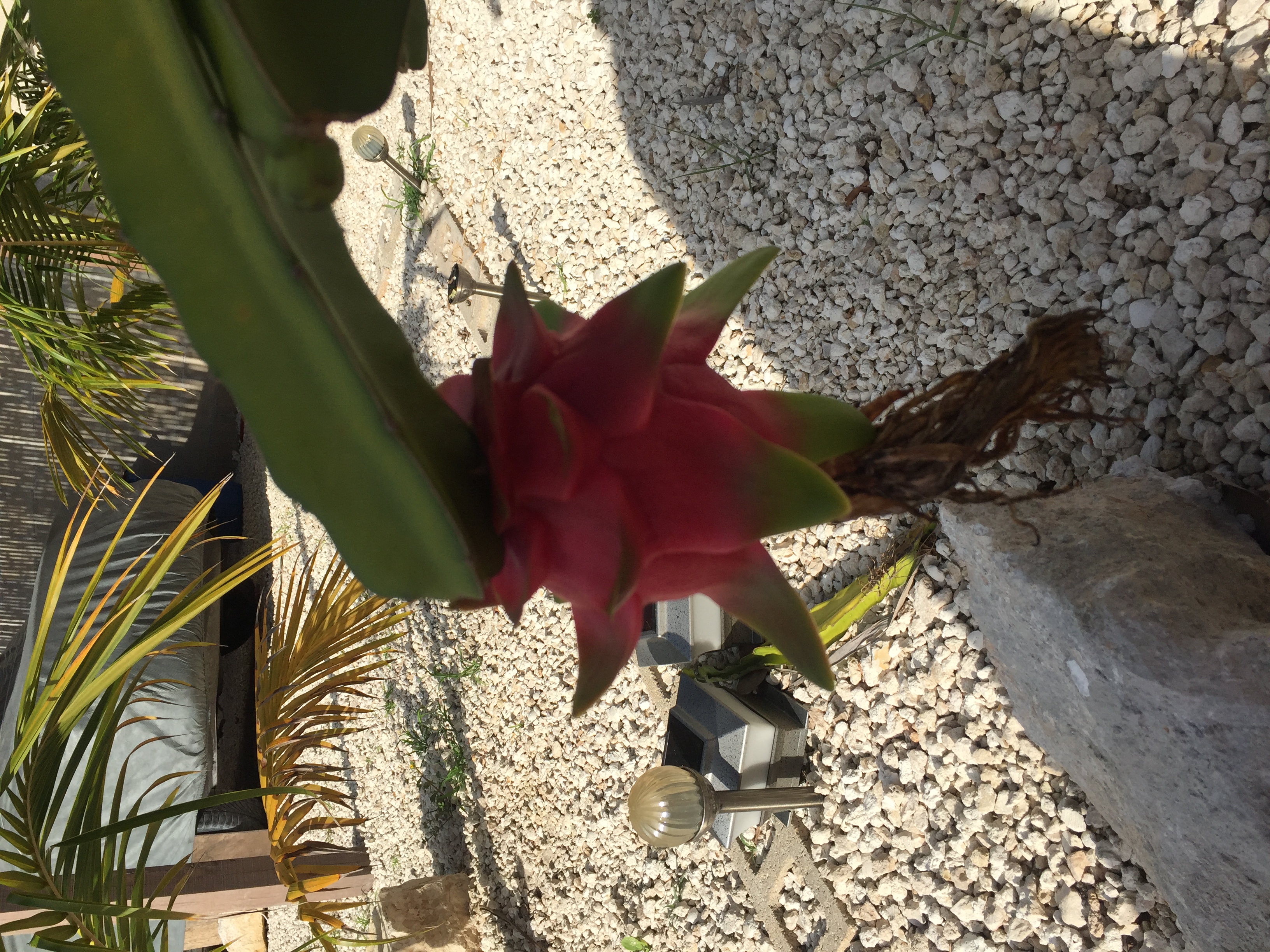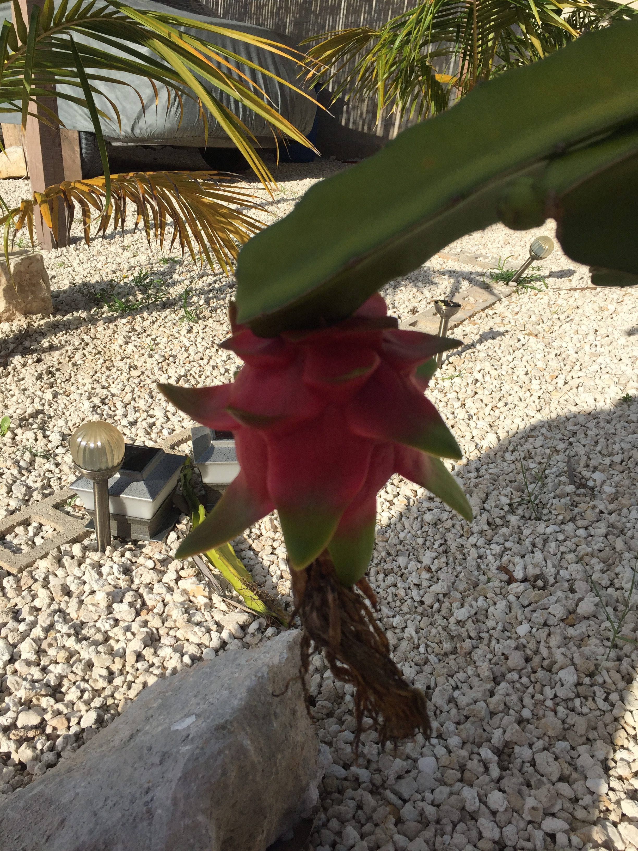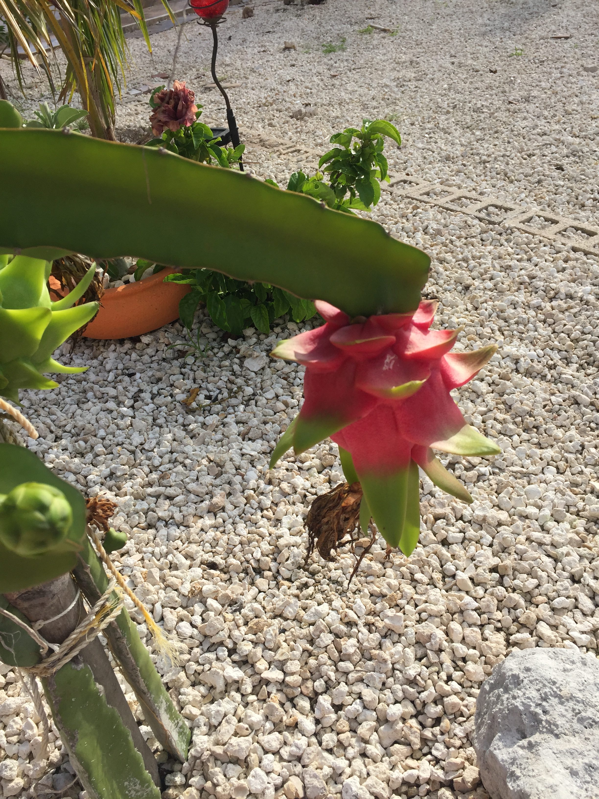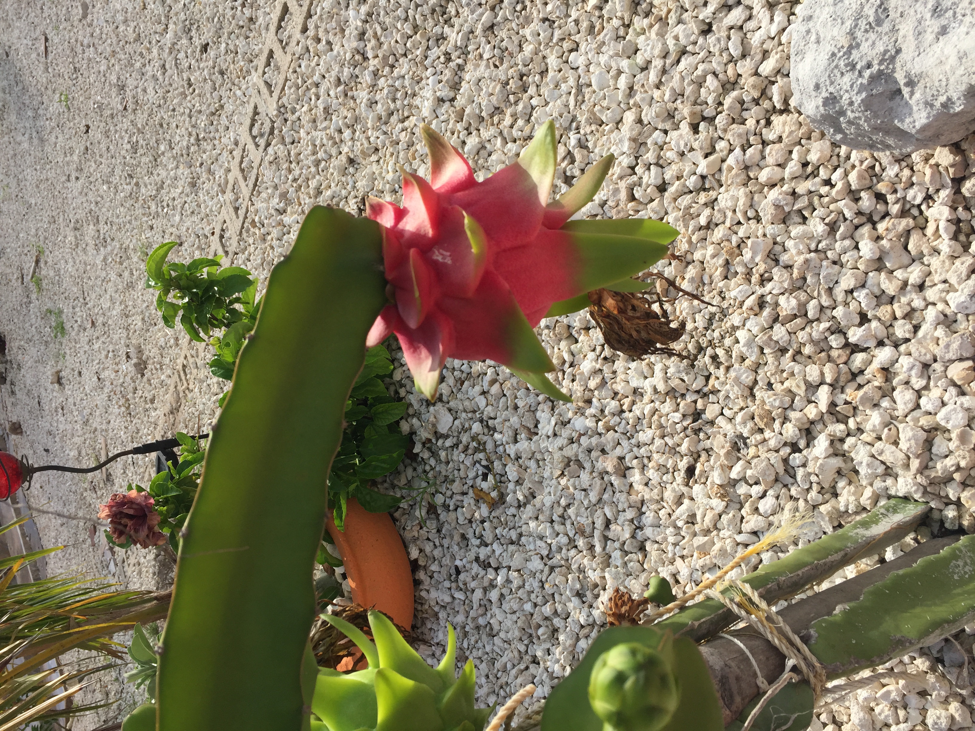 I went into the garden this morning to get one Puppy’s toys, when I was stopped dead in my track by something pink hanging from one of my cacti: