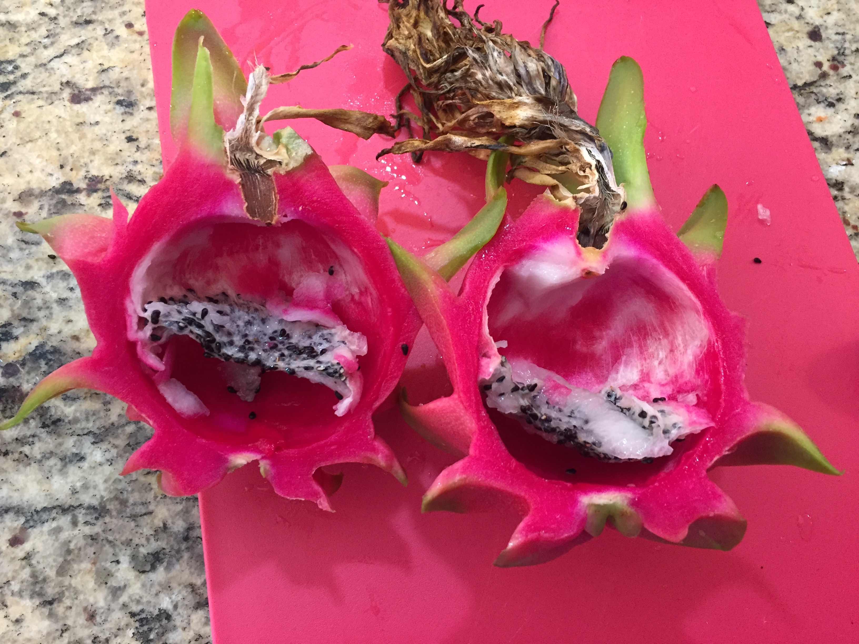 So pretty! I was surprised by the hard “rib” across the middle of the fruit (like a very stiff grapefruit segment), giving it two hemispheres.