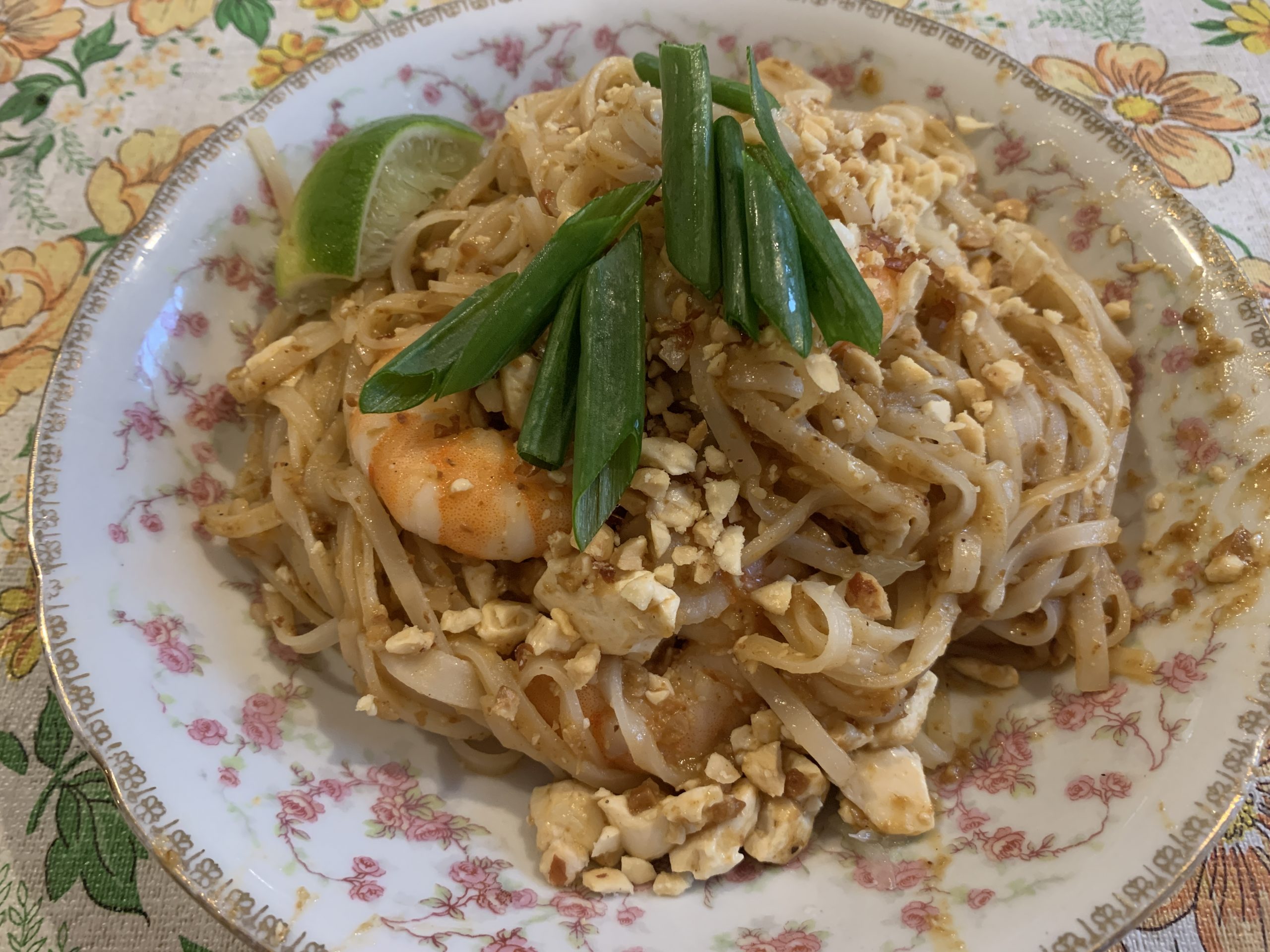 So last night, I tried my hand at making pad Thai from scratch. Like all the “truly authentic” pad Thais I’ve had, it came out tasting quite fishy (thanks to all the dried shrimp — what an acquired taste!) and not very sweet, but still wonderful. I was very pleased with my efforts and can think of a few tweaks to make it even more to my taste next time. I followed Jet Tilla’s pad Thai recipe nearly exactly — I didn’t have the turnip or tofu he mentioned, and I subbed soft tofu for egg.