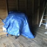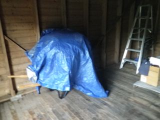 That done, I moved in some pallets on which to rest stuff, moved all the crap out of my yard into the building, draped a tarp over what I didn’t want to get wet as there was rain in the forecast for Saturday night, and added a lock to the door for show.