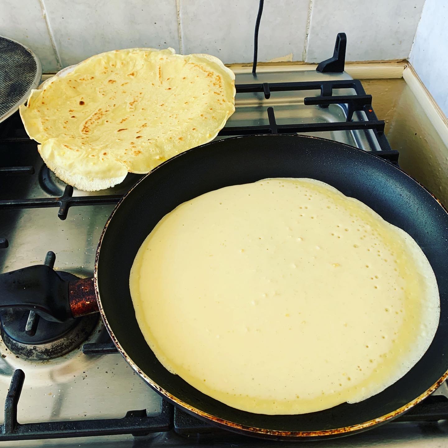 Yes, eggs have officially taken over my life. 😆 I have a long list of foods to rediscover! Today, I decided to try my hand at making crêpes, my mother’s speciality. Whether I get off a plane late or it’s the first morning of a visit, there will be crêpes waiting. They always give me a stomach ache, but they’re worth it. Well, behold crêpes that don’t hurt! 😋