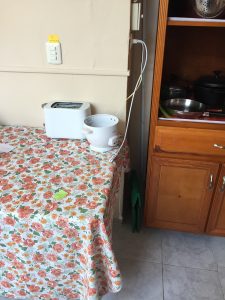 I would want the cart parked for use by this outlet, but I wouldn’t want it nearly as deep or long as the plastic table because I will eventually have a stove. Also, I’d want it counter height (90cm/35in) as a table is way too low to work at.
