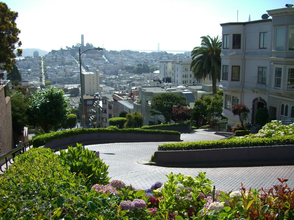 1) the famous Lombard Street, touted as the crookedest in SF. Apparently, the locals know that’s not true, but the real crookedest street is in an unsavoury part of town…. At any rate, the crooked part of Lombard is beautiful, paved with bricks and immaculately landscaped. I have no idea how residents of this part of the street manage to navigate in and out of their driveways. I’m no photographer, but I think this pic is pretty good!