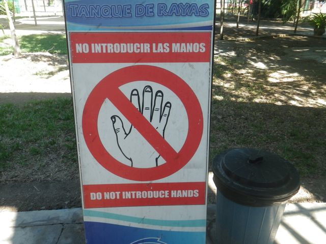 This sign made me laugh. Spanish: The sea lion jumps could wet the people in the front row.