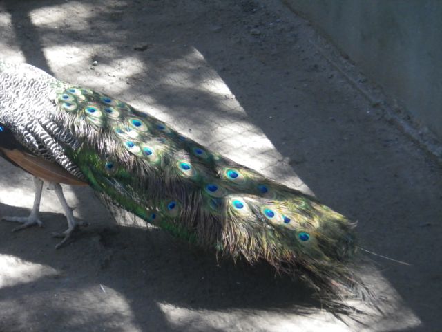 I think this might have been my first time seeing peacocks in North America, and very likely my first time seeing coloured ones (I saw albino ones at Scone Palace in Scotland). The plumage is stunning, but the birds are actually quite unattractive.