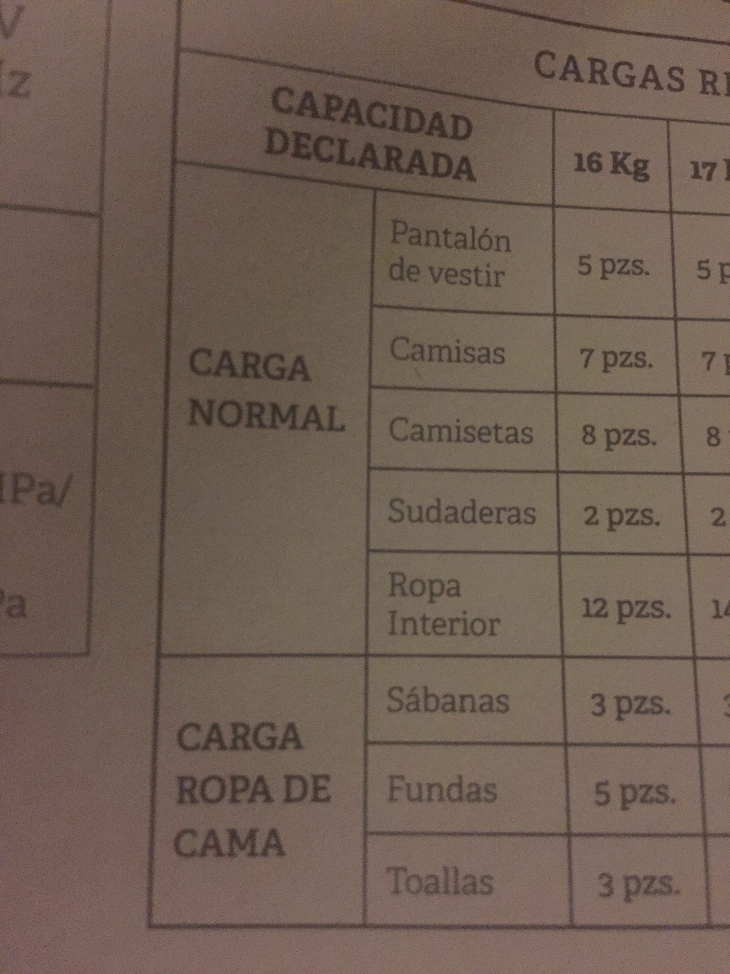 A regular load of 5 pairs of dress trousers (ie. not jeans), 7 shirts, 8 tee shirts, 2 sweatshirts, and 12 pieces of undies. Sounds about like a typical load for me, with my dresses being equal to a pair of trousers plus a blouse.
