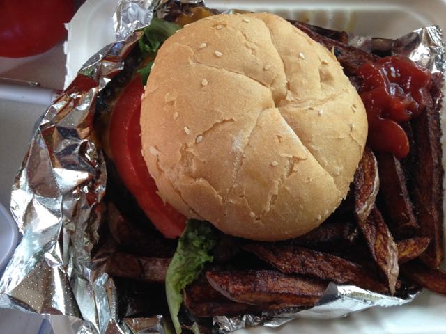 Reeling from shock, I left the shop and headed to the Jolly Giant pub to get a burger to go. That would put dinner around 3:30 by the time I got home, but I had breakfast at 5:00 and lunch at 10:00, so my stomach was adamant that it was time for dinner!