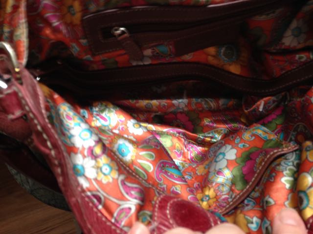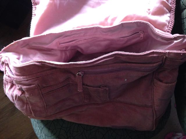 Then, I found what I am fairly certain is a diaper bag, but I am planning to use it as a computer and airplane carry on bag. It is really cute. I love all the pockets, as well as the découpaged flowers!