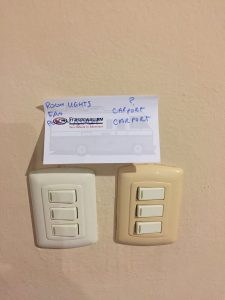 I then had to get typing as I was really down to the wire. I got up at one point to turn on the porch and street lights and decided that I was done flicking light switches aimlessly. So I took five minutes to go through the house and label all my light switches!
