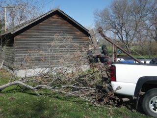 - SaskPower moved onto my property this half of a tree that belongs to the neighbours in the book. J winched it out of the way.