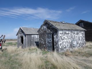 Croft: Both roofs are bad. I probably won’t worry about the shed for now. The amount of money and effort to get it weather tight would mean doing it right the first time; not worth doing it twice. But the roof on the larger one is much better and I might be able to bum a couple of shingles off a neighbour who has left over ones to cover the couple of holes.