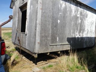 The smaller one, which will be a shed, was not attached to its skids. J and Charles were shocked since they had come out recently to scout out the buildings and this completely escaped them.