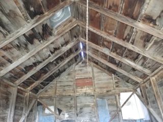 - You can see that the wood got wet, but it’s not rotten. I will be hosing both buildings down with a bleach solution.