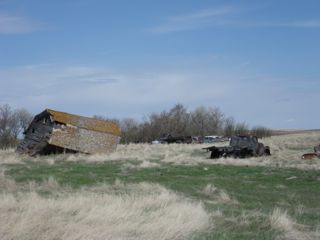 Followed hours of trying to get the building attached securely to the skids, including a run back to Charles’ place for parts. We had arrived on site around 9:30 and didn’t get on the road with the first grainery till almost 1:30. I had complete faith in J by this point. He’s a bit of a loud mouth, but there was no cockiness here, just expertise.