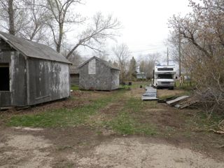 I had originally planned to stick both buildings together, but tree stumps and overhead lines nixed that plan. The shed wound up at the southwest corner of the property, near the street. Right now, its opening is right on the street, but Charles will make me a door on the side and the existing hole will be covered.