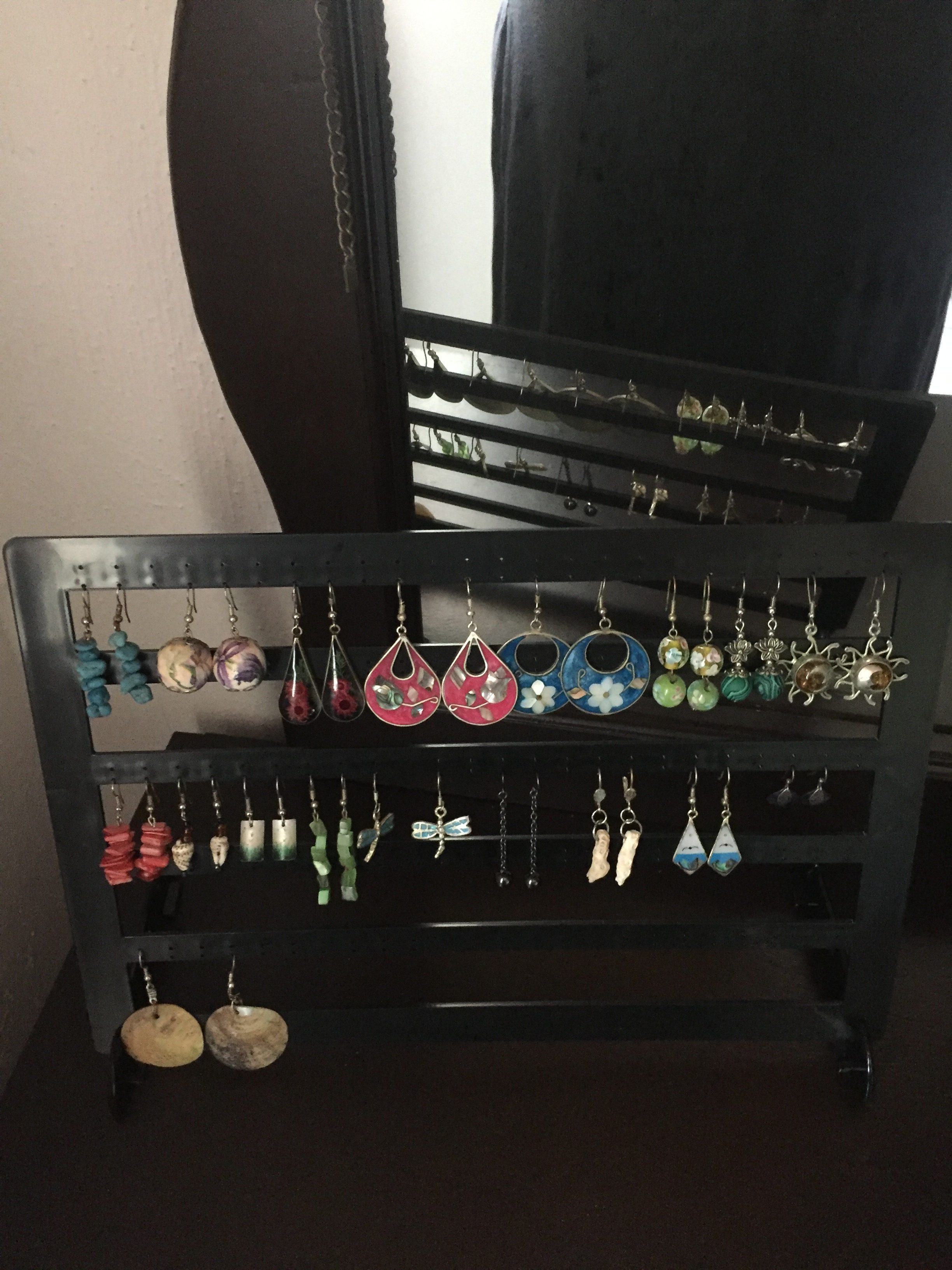 One of the items in the box was this earring holder for my dresser that I couldn’t have found or had made here for the few dollars it cost (and before you ask, I was buying something else that had a $4 shipping charge and I was able to “add on” the holder with no additional shipping charges):