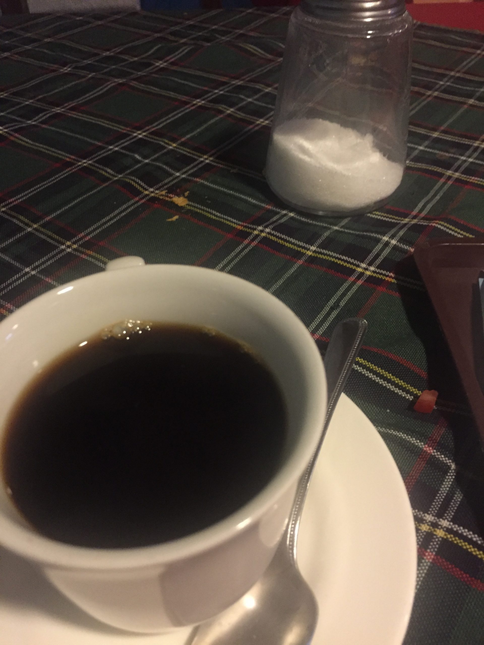 I had settled the bill and was about to leave when the server came back and asked if I wanted coffee! I don’t normally have coffee that late, but booze tends to cancel out the caffeine and this offer was too generous to decline.