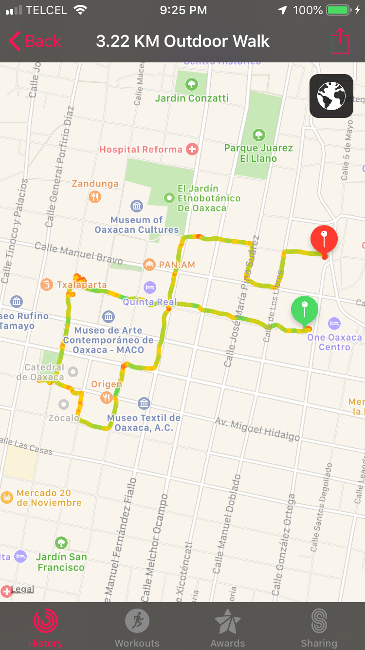 So I wandered… The green is home and the red is where I eventually ended up. Where it says Tlaxaparta is La Casa de las Artesanías de Oaxaca.