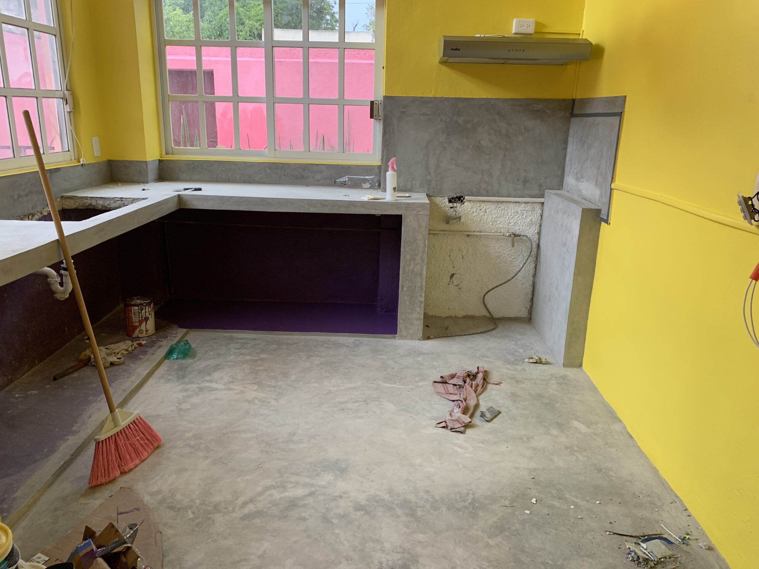 Since there was enough purple paint left I was vetoed on repainting the whole under cabinet area. The guys like the purple against the yellow as much as I do!
