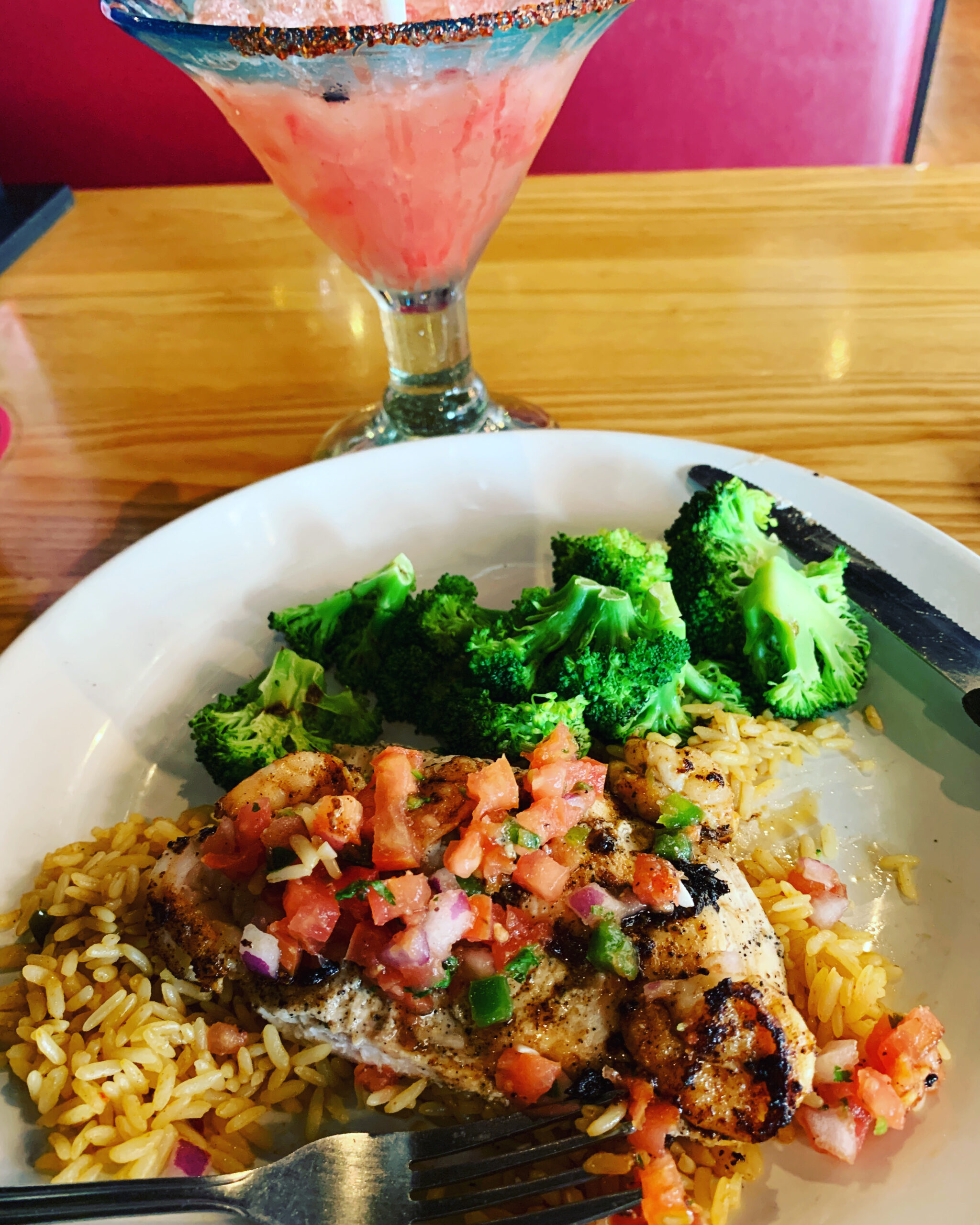 I was going to do my usual ribs for dinner, but when I saw a shrimp and chicken with rice and broccoli plate topped with pico de gallo, that’s what I wanted, probably because I haven’t had a lot of “real” meals lately. This was pretty darn close to home cooking and so good. I love how their pico de gallo doesn’t skimp on the serrano peppers, lending just enough heat to the meal while brightening it up and cutting through any richness.