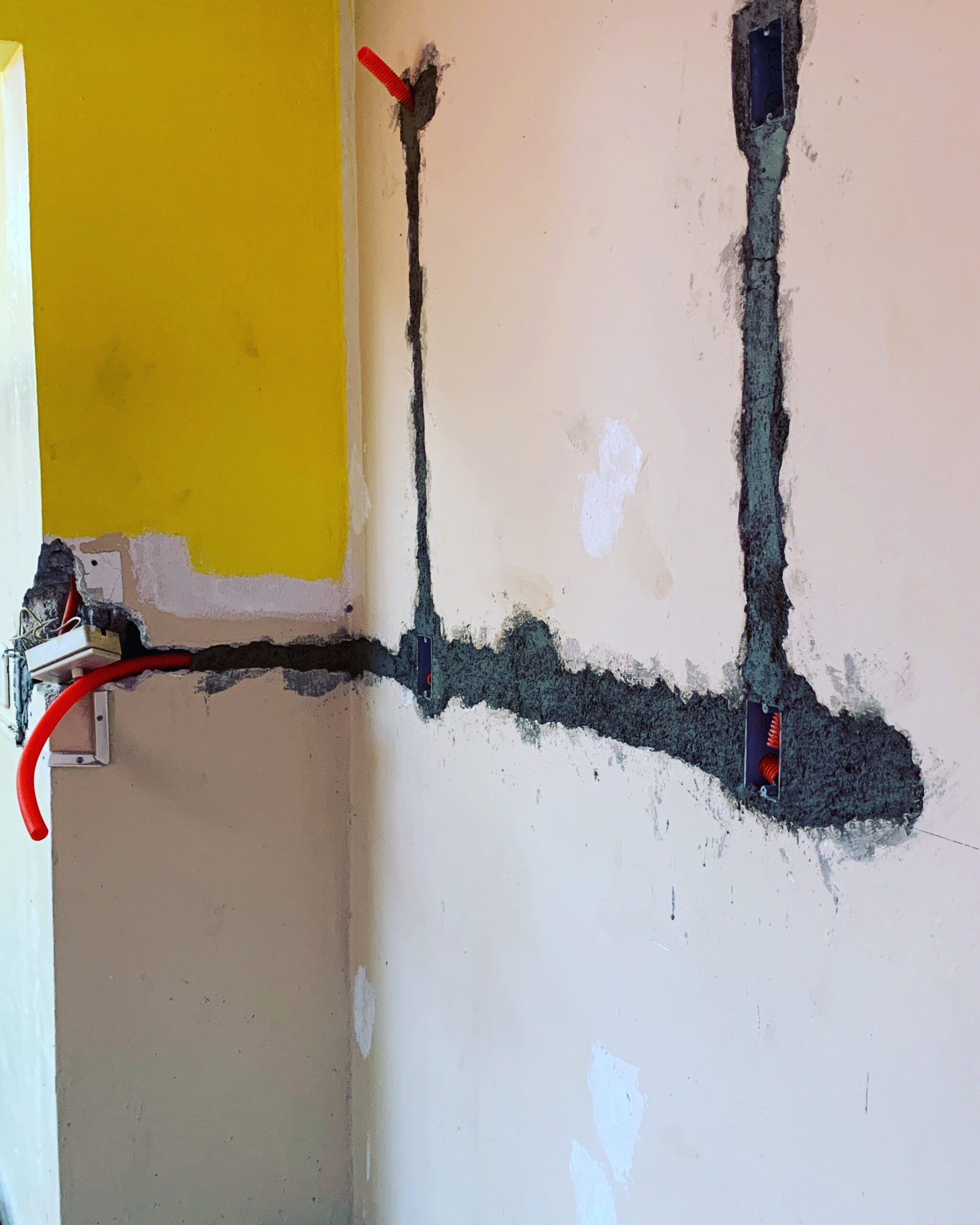 Friday was more of a prepping than a let’s get ahead kind of day. The concrete guy was here smoothing out the base of more of the walls because I am not going to have baseboards anymore in this room, which will save me precious inches of space. They made progress on some of the electrical work, but I discovered that my “Please change the two existing outlets and the fan control on the living room wall side” was not conveyed to the workers, so now those might be extras in the budget (really not a big deal — I’m just glad I caught them before they reinstalled everything).