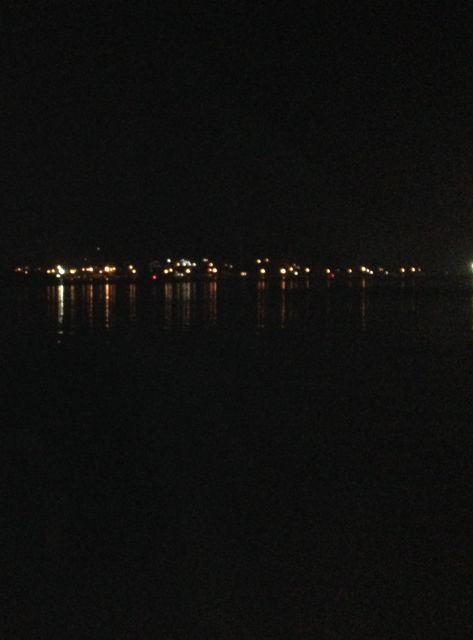She swung by my place at 5:00 and we headed out to the panga at around 5:15, already dusk, with a huge moon hanging over Isla. It was getting on dark when we landed. We had decided to walk to the venue, a B&B/restaurant called Macaws, but take a pulmonía back.
