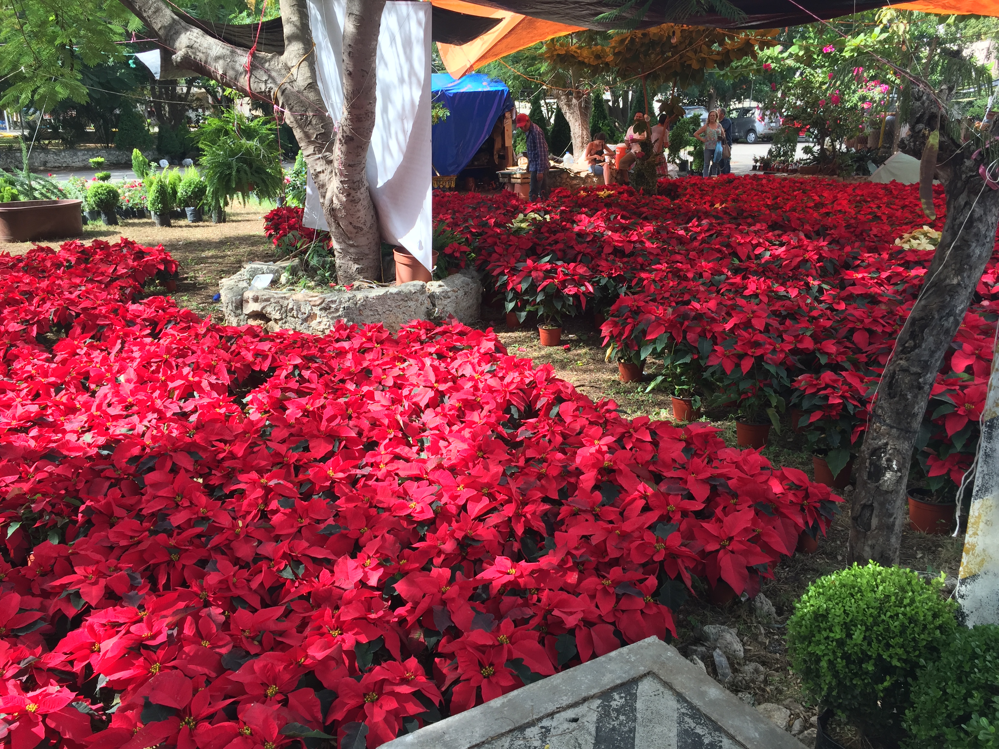 Heading south on Calle 60, I passed this wonderful place selling Christmas trees and poinsettias — so pretty and it smelled like Canada. 🙂