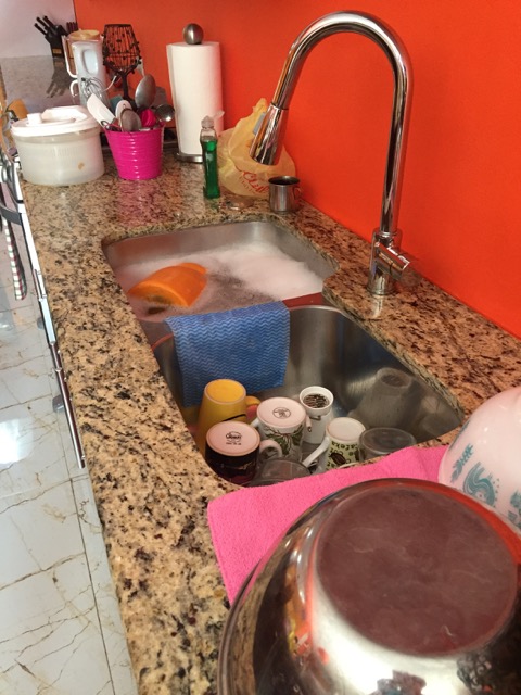 So my hosts left this morning and it was time to get some more boxes out of my suite and into the kitchen! I was left with tons of empty cabinet space, so I knew I could unpack fully. I washed so many dishes today! Everything was gross from nearly a year of disuse.