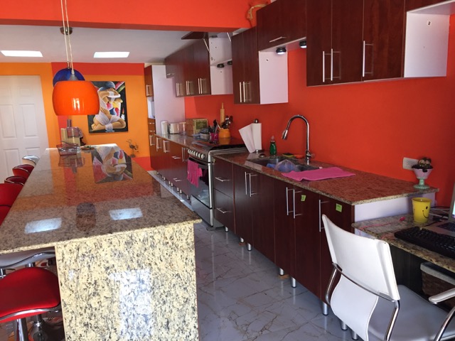 The door at the back leads into another bodega. To the immediate left of the kitchen (open plan, L shape), is the main house’s living room, the master bathroom, and the master bedroom. I will not be using those spaces and don’t feel they should be shared.