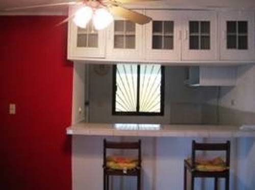 The kitchen appears to be one of the better ones with cabinets that I’ve seen: