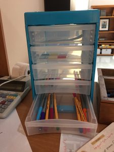 Then, since I was there anyway, I went into Bodega to get some of their “famous” (expats rave about it) fried chicken for lunch and to get a few things household things. One of those was a set of plastic drawers for storing office supplies (especially writing implements), which I haven’t been able to find in a pleasing colour or the right size. So when I saw this, which is exactly what I wanted, on offer for $80 I was quick to snag it: