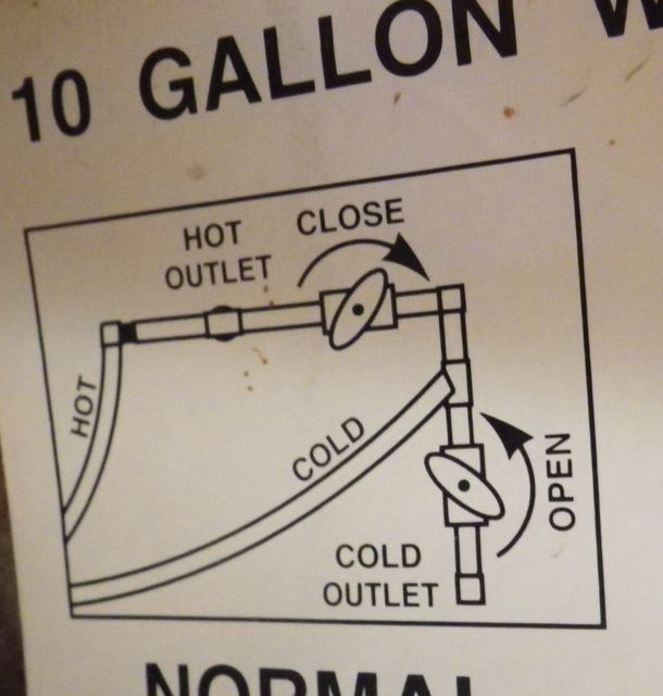 This morning, I reexamined the valve that I had cut out and my suspicion was pretty much confirmed, but I still wanted one more piece of evidence. I really wished that I had a water bypass installation diagram to confirm it before I took anything apart. Guess what I found way at the back of my water heater cabinet, located in such a way that I was only able to read it by shoving my camera down the side of the cabinet and blindly snapping pictures until I got a clear one? I really want to have Words with the guy who installed my water heater!