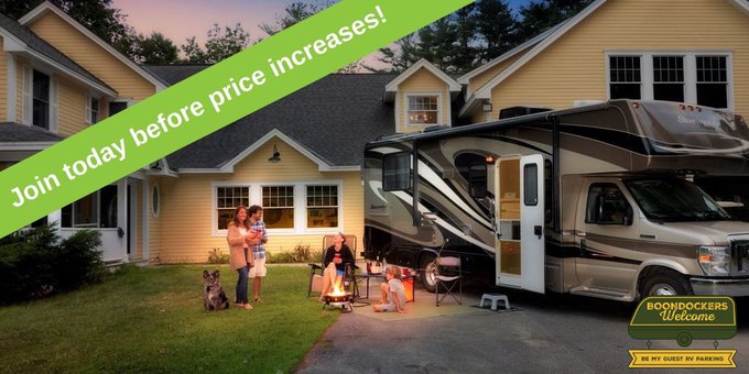 Now’s the time to join if you haven’t already. Boondockers Welcome is a great program to meet fellow RVers and park for FREE. And right now you can join for just 30USD or 39CAD/year for life. That’s less than one night in a campground. http://boondockerswelcome.com/referrals/119/