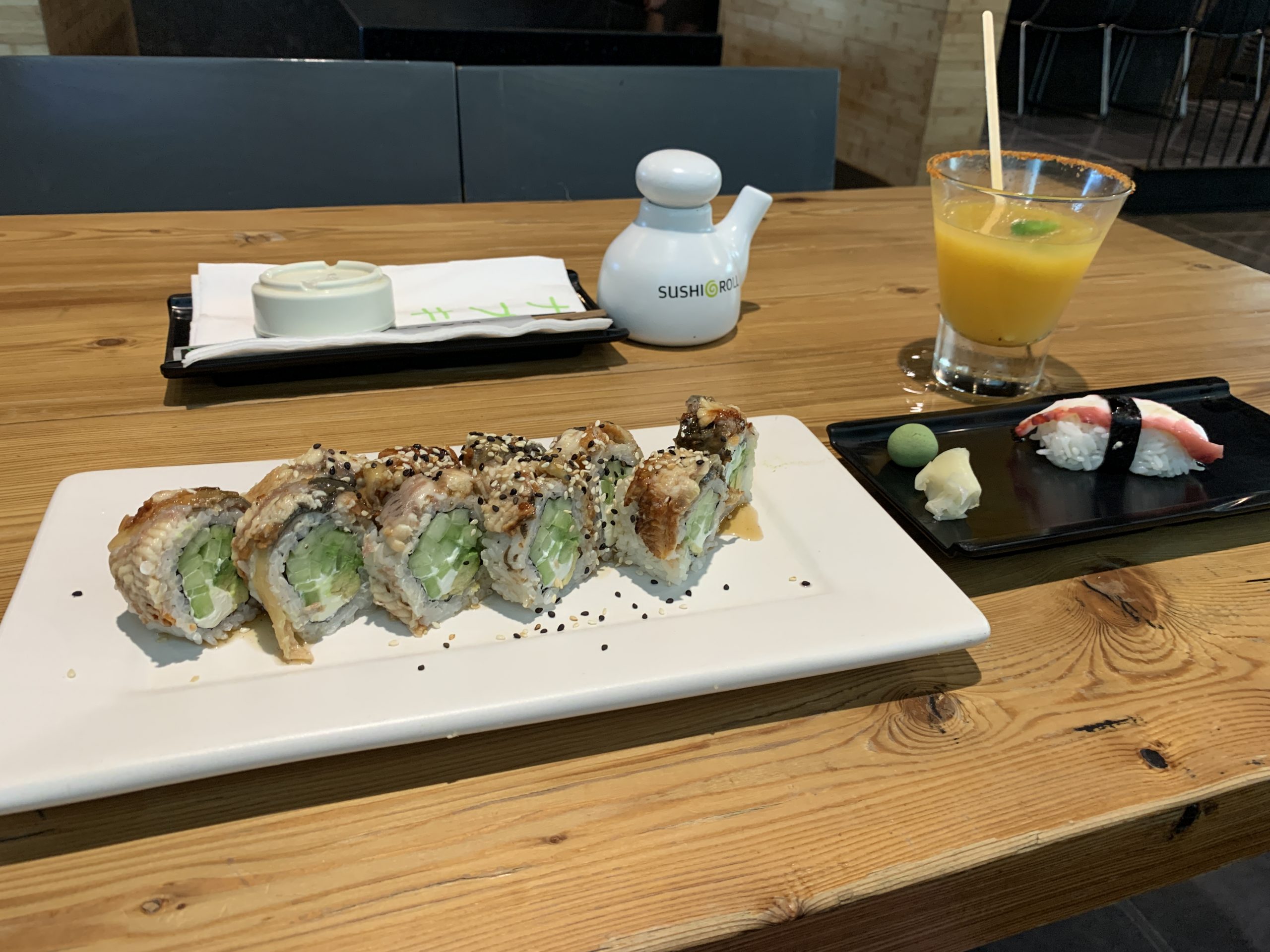At Sushi Roll, I sat in the same booth as I did last time, so many months ago, and there was a clue that time had sprung forward — the menu was accessible through a QR code. This technology makes sense — no worry about sanitizing a pile of menus — but when the server is slow, it’s a bit of a pain.