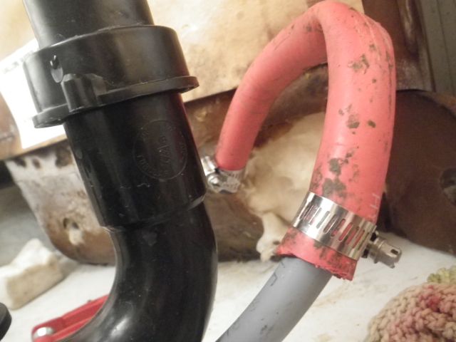 So I went back out to my MacGyver pile and cut myself a longer piece of hose. I still have a kink, but it’s not nearly as bad.